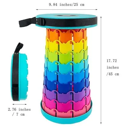 Portable and Lightweight: Retractable folding stool is only 1.94 pounds, the closed size is 9.84 x 2.56 inches with adjustable strap, which makes the portable telescoping stool easy to carry in your hand or hanging on your shoulder with the adjustable two straps without any burden.The collapsible stool is portable, lightweight and convenient to place into luggage.